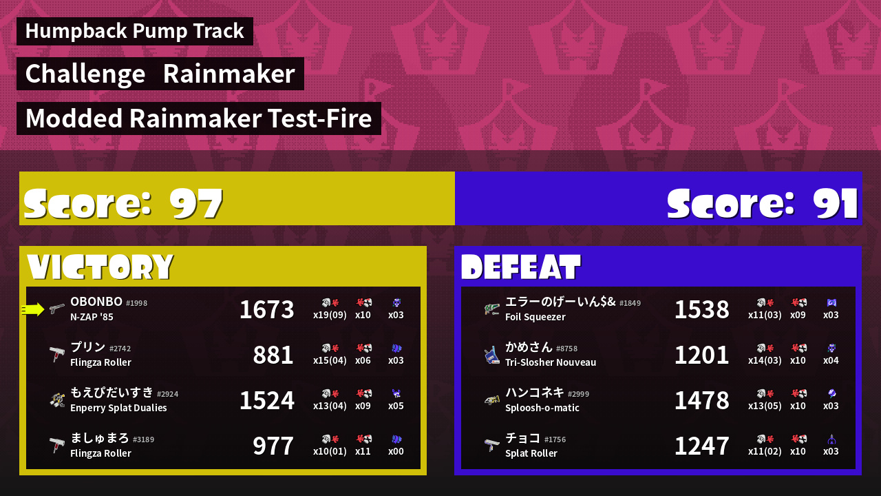 | Medals | #1 Overall Splatter #1 Score Booster Record-Score Setter | ||