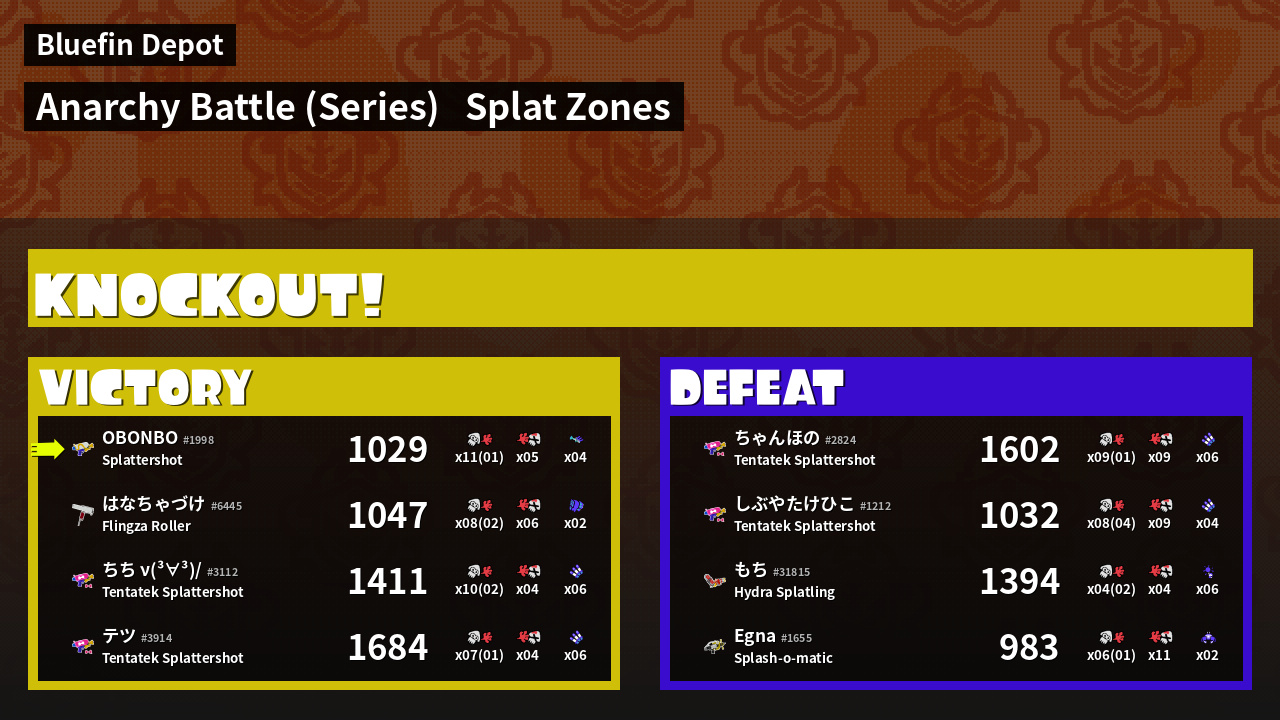| Mode | Splat Zones - Anarchy Battle (Series) | ||