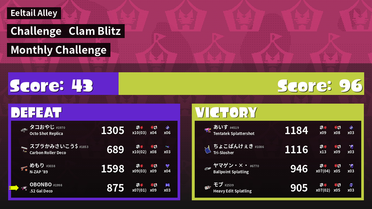 | Weapon | .52 Gal Deco ( Curling Bomb / Splattercolor Screen) | ||