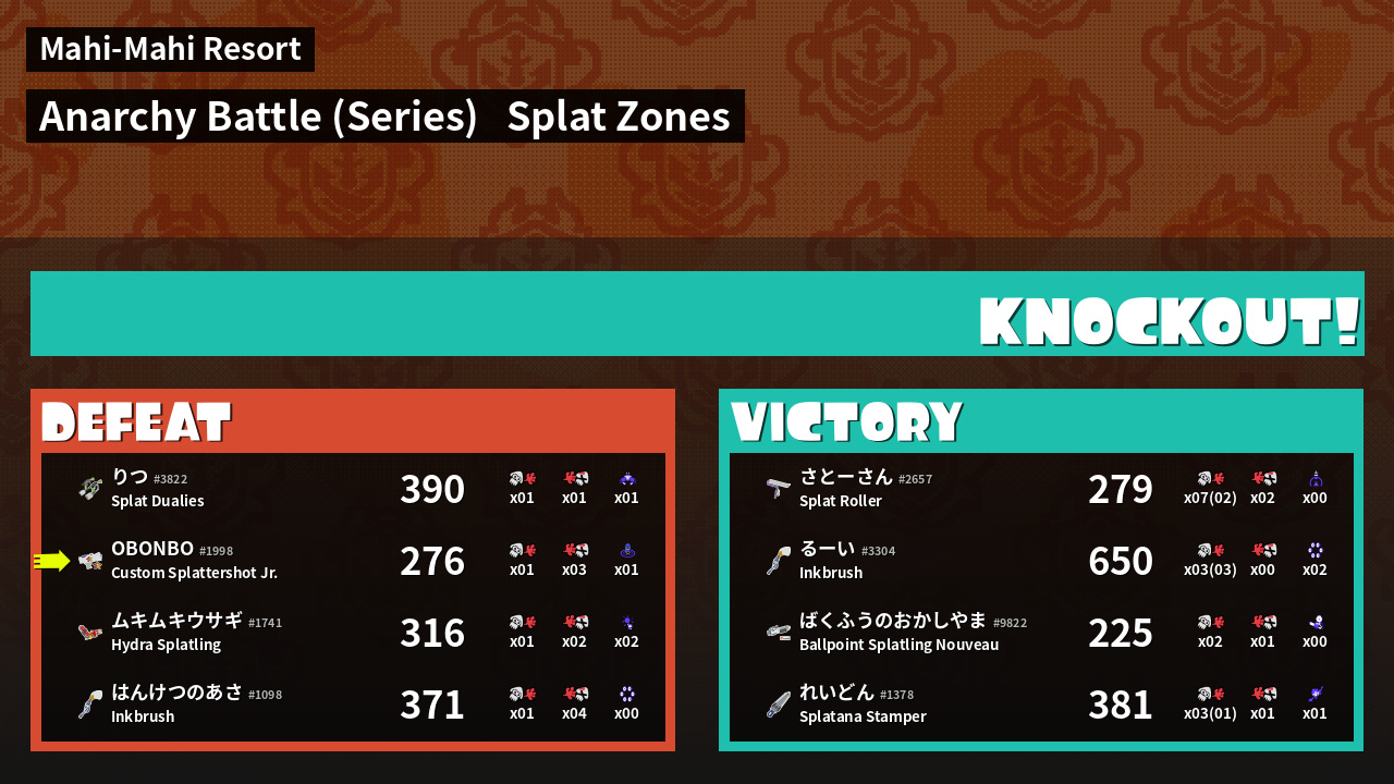 | Mode | Splat Zones - Anarchy Battle (Series) | ||