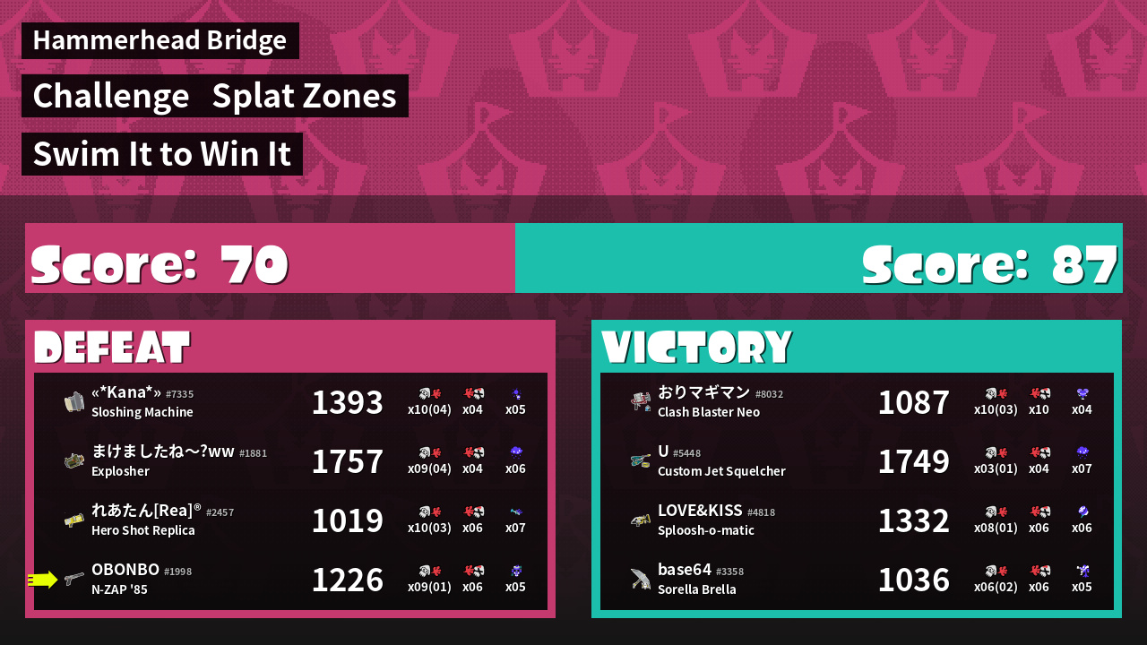 | Mode | Splat Zones - Challenge | ||