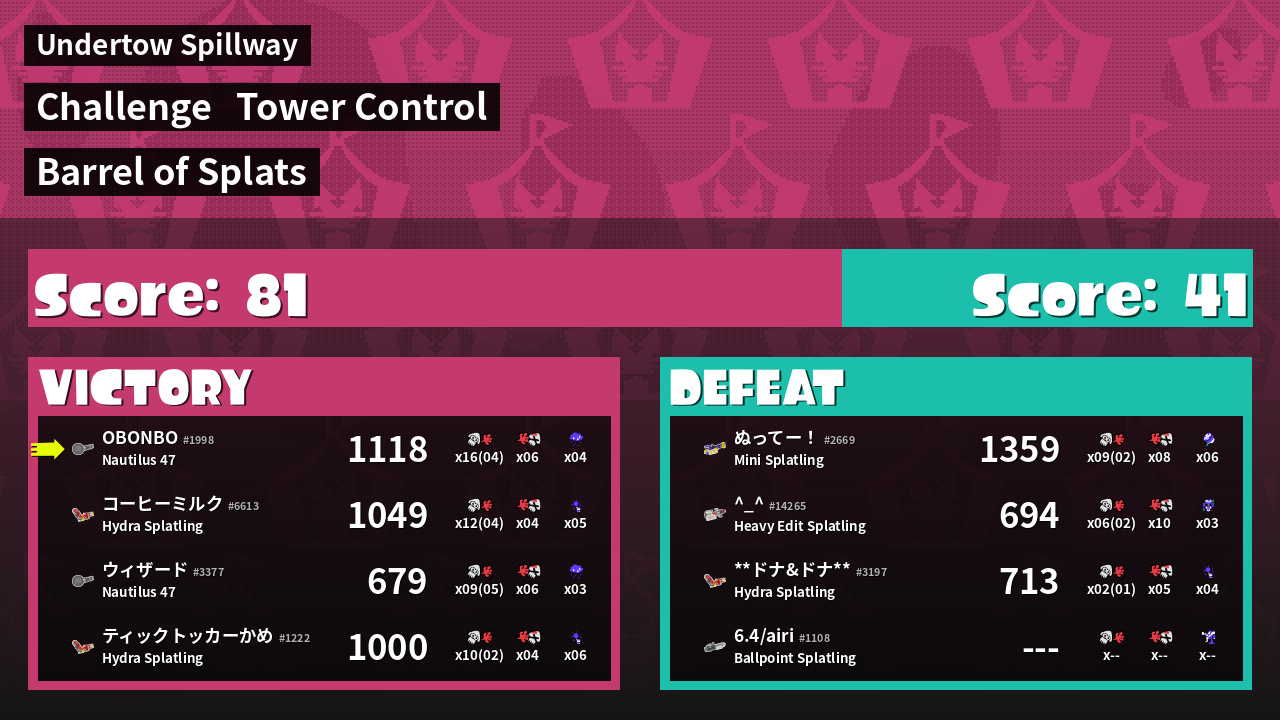 | Challenge | Barrel of Splats Muster as much firepower as you can<br />in this battle of the splatlings! | ||