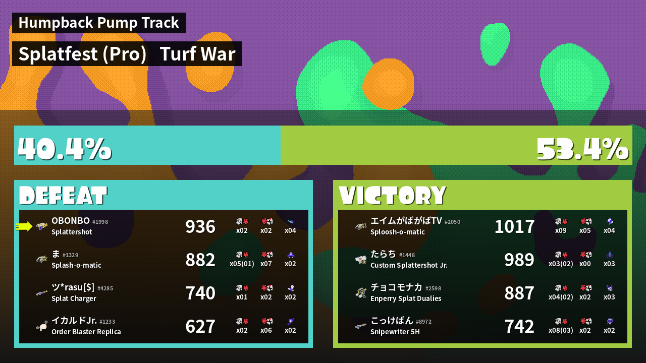 | Mode | Turf War - Splatfest (Pro) | ||