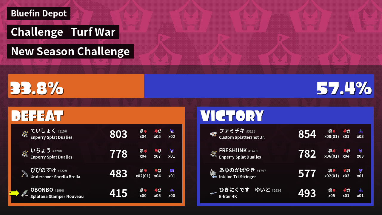 | Mode | Turf War - Challenge | ||