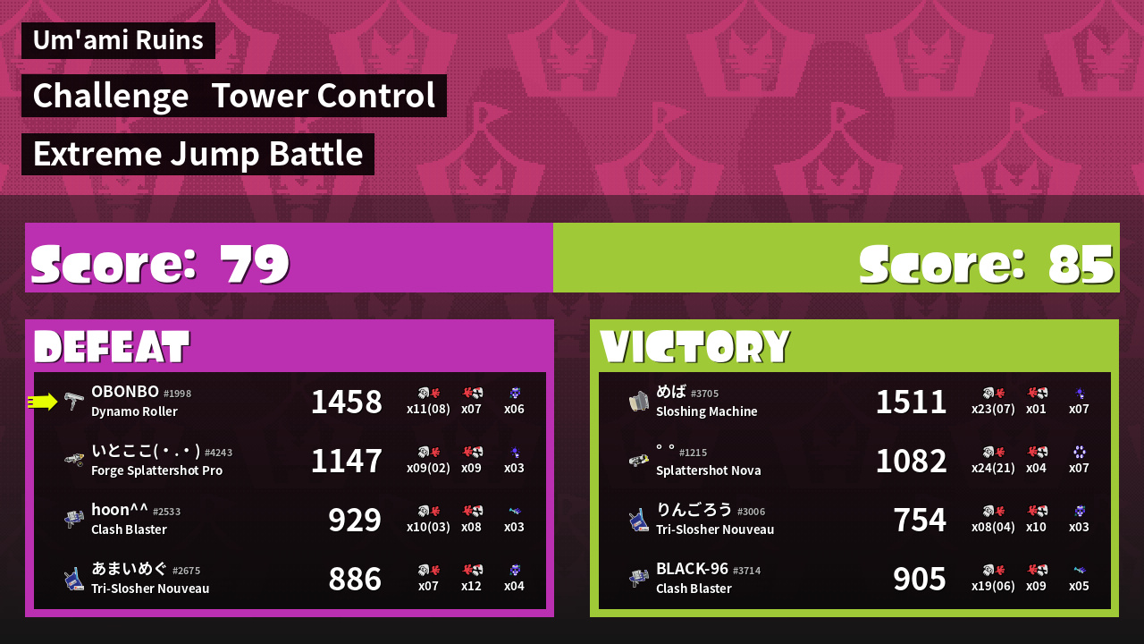 | Medals | #1 Overall Splatter #1 Score Booster Record-Score Setter | ||