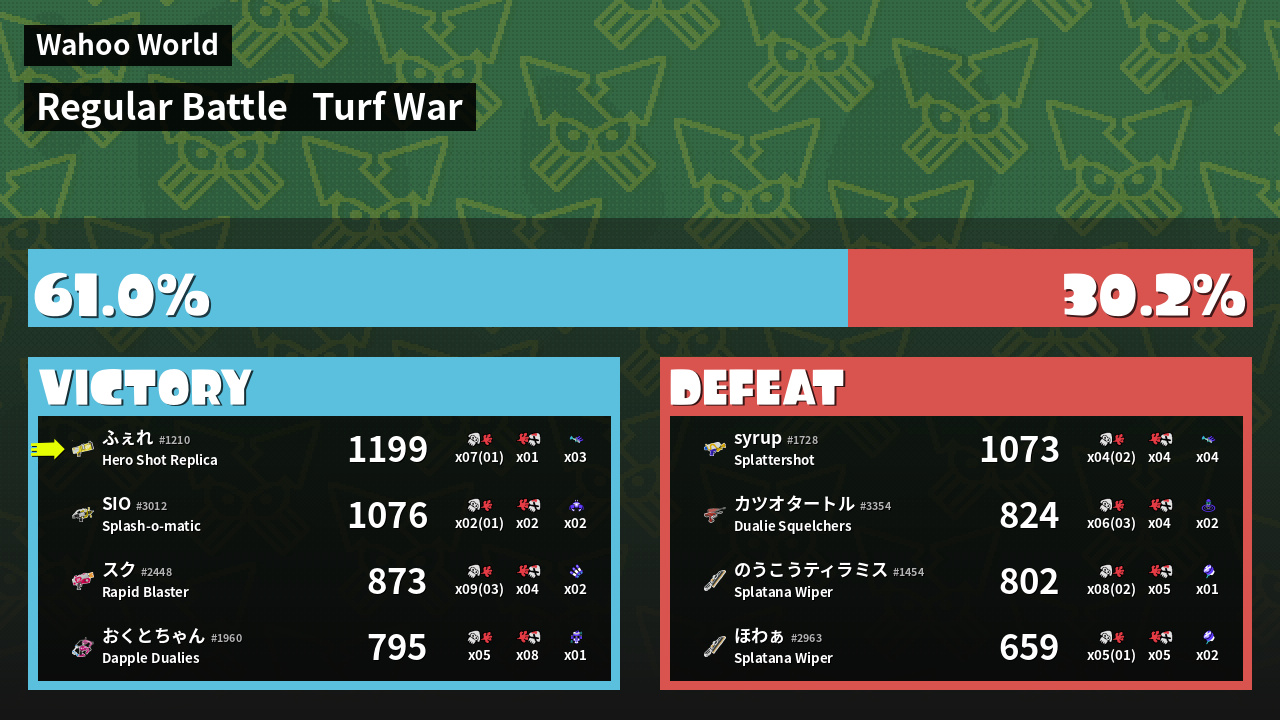 | Medals | #1 Turf Inker #1 Super Jump Spot #1 Enemy Splatter | ||