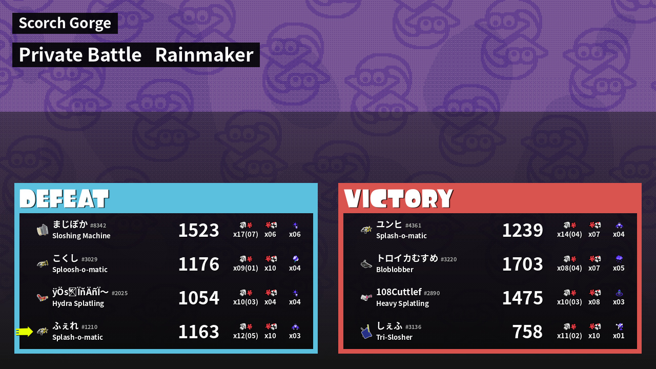 | Medals | #2 Overall Splatter #2 Splat Assister | ||