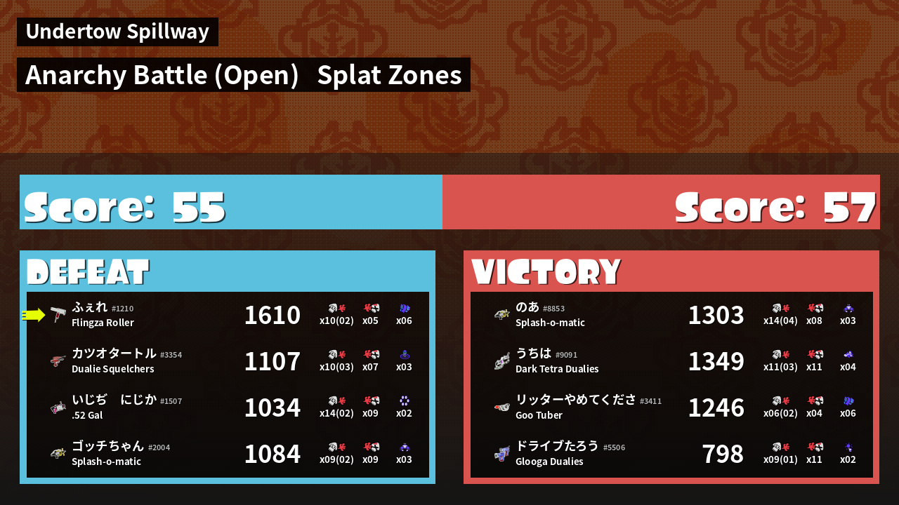 | Mode | Splat Zones - Anarchy Battle (Open) | ||