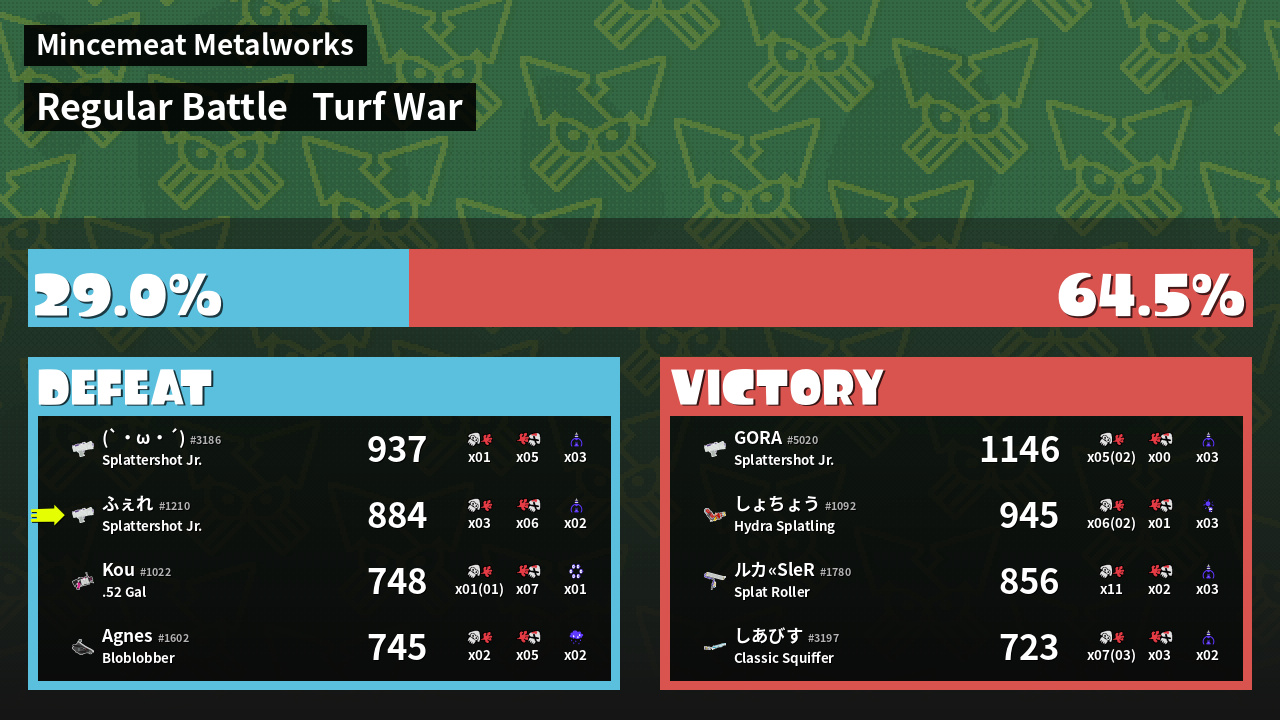 | Mode | Turf War - Regular Battle | ||