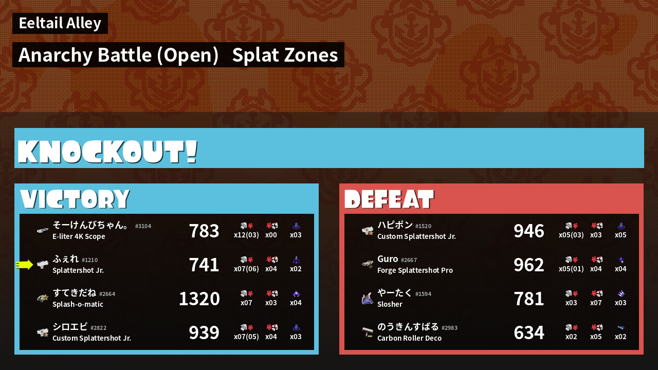 | Mode | Splat Zones - Anarchy Battle (Open) | ||