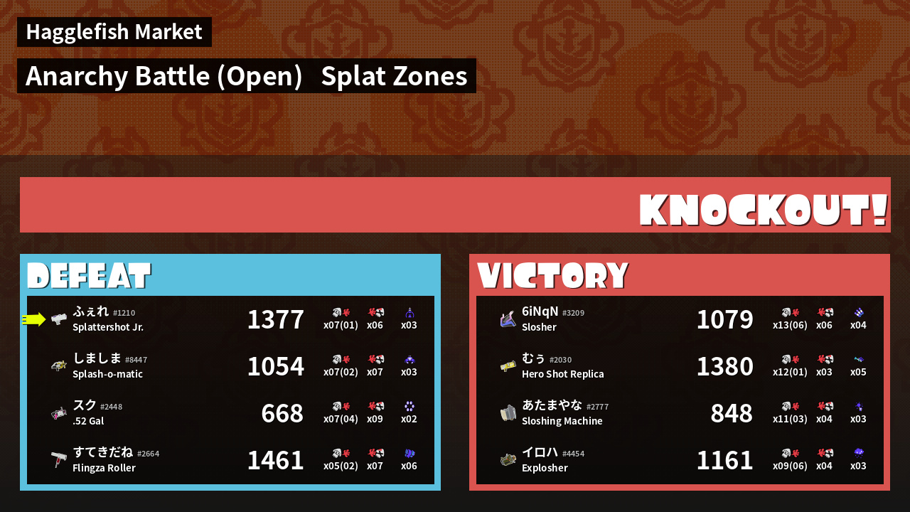 | Mode | Splat Zones - Anarchy Battle (Open) | ||