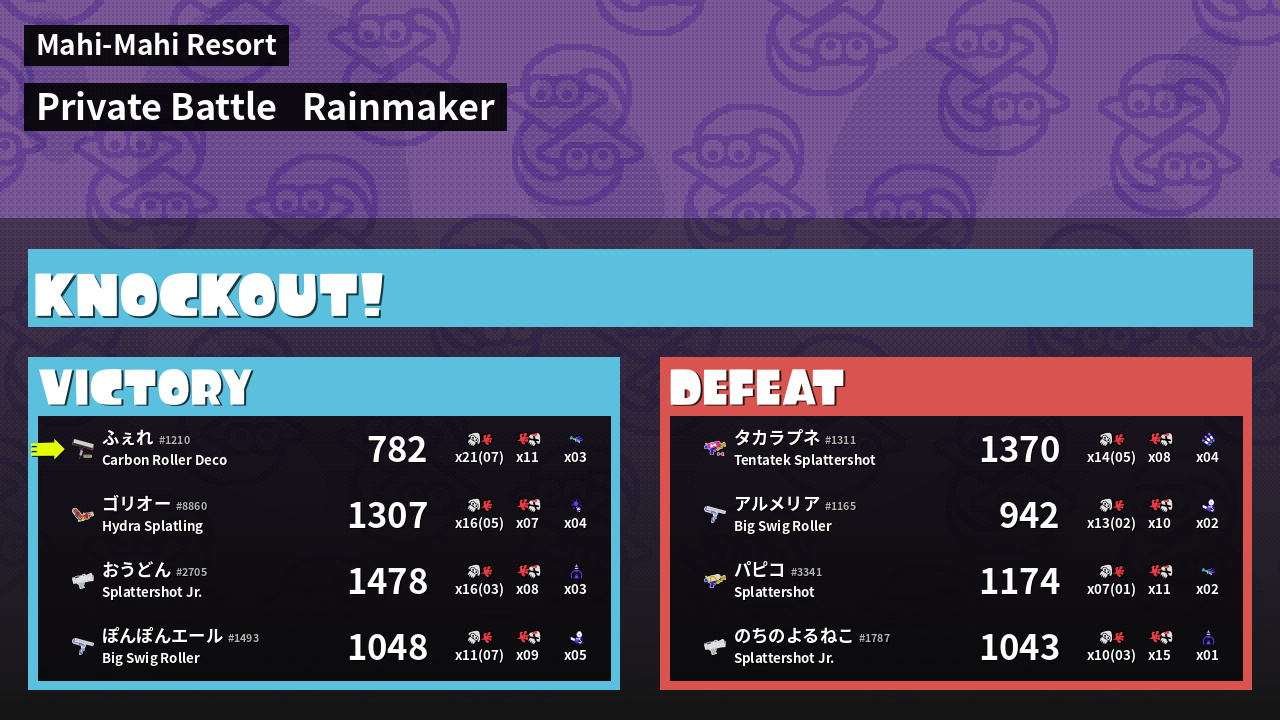 | Medals | #1 Overall Splatter #1 Enemy Splatter #1 Splat Assister | ||