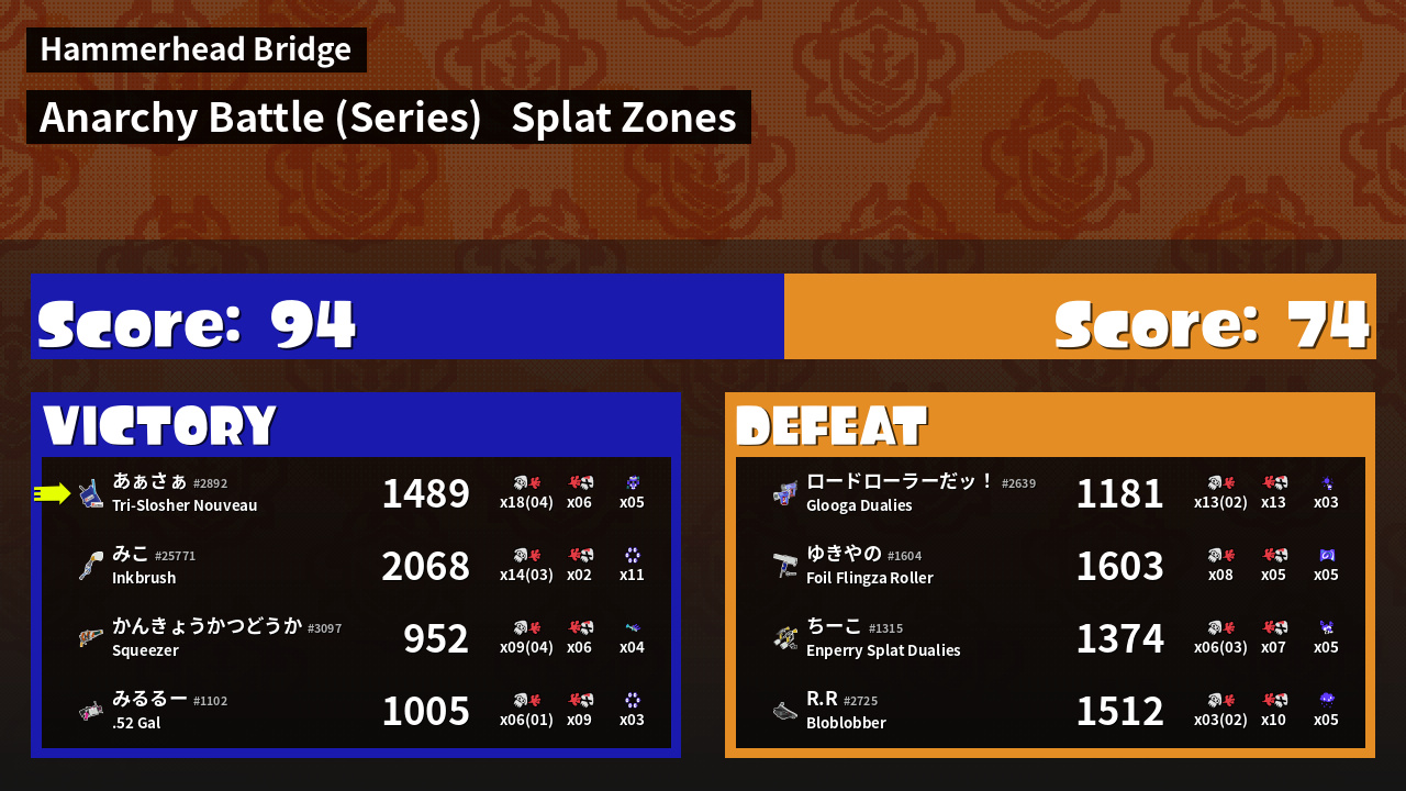 | Mode | Splat Zones - Anarchy Battle (Series) | ||