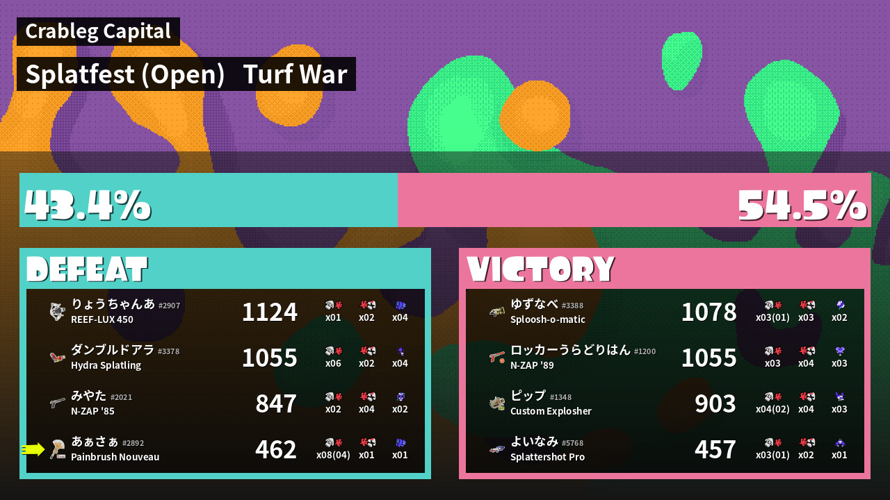 | Medals | #1 Overall Splatter #1 Splat Assister #2 Home-Base Inker | ||