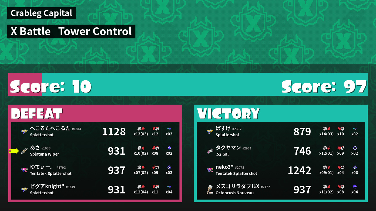 Kills / Deaths | 8 + 2 / 8 = Kill Ratio: 1.00 | ||