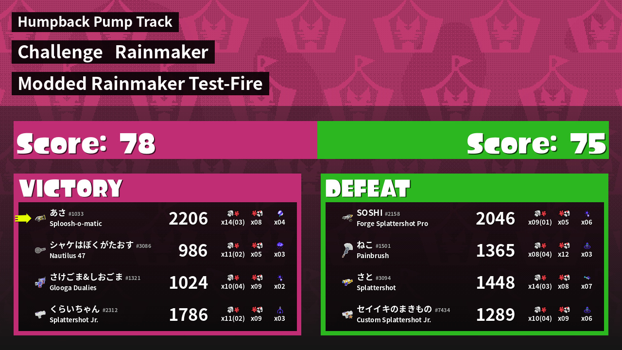 | Medals | #1 Overall Splatter #1 Score Booster Record-Score Setter | ||
