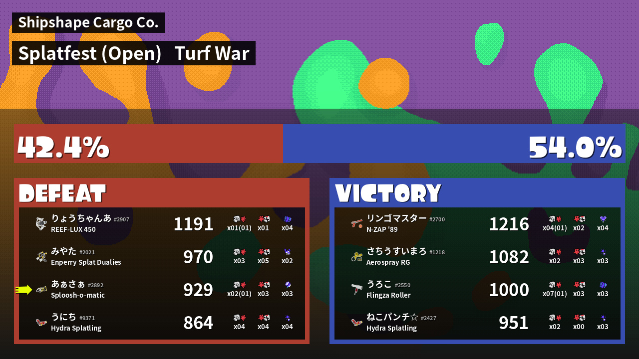 | Medals | #1 Splat Assister #1 Ground Traveler #1 Ultra Stamp User | ||