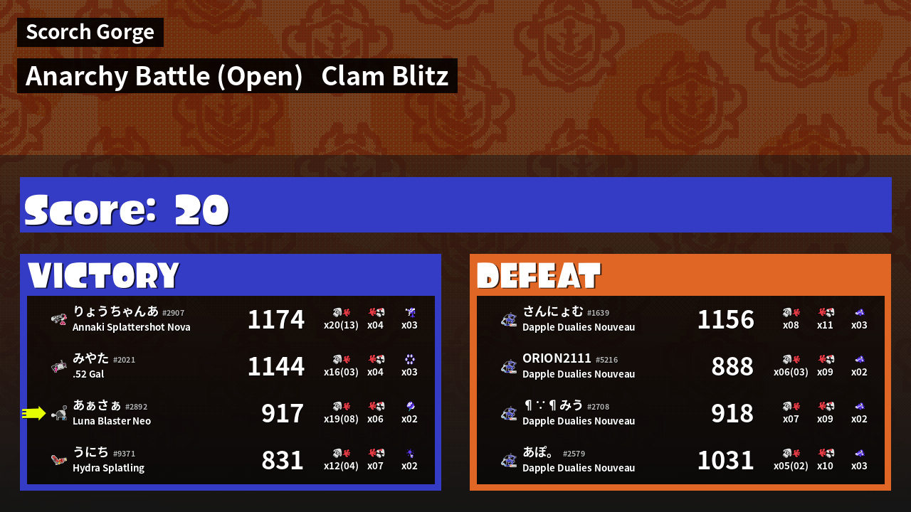 | Mode | Clam Blitz - Anarchy Battle (Open) | ||