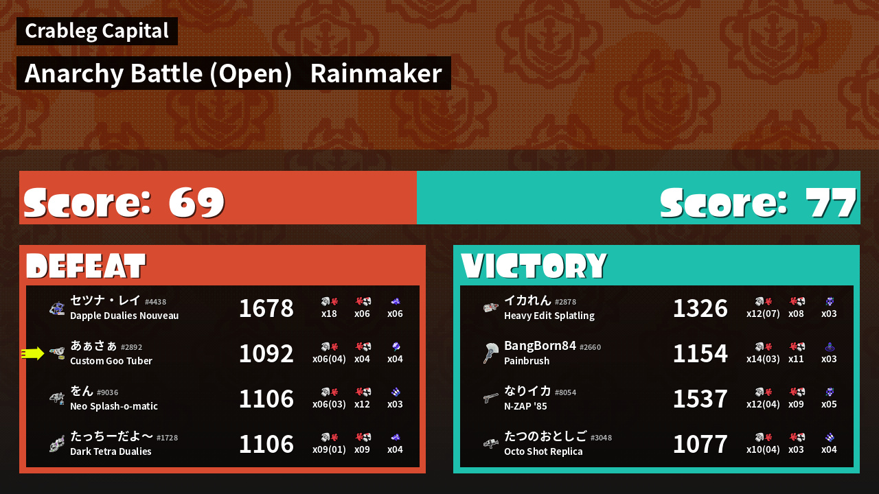| Mode | Rainmaker - Anarchy Battle (Open) | ||