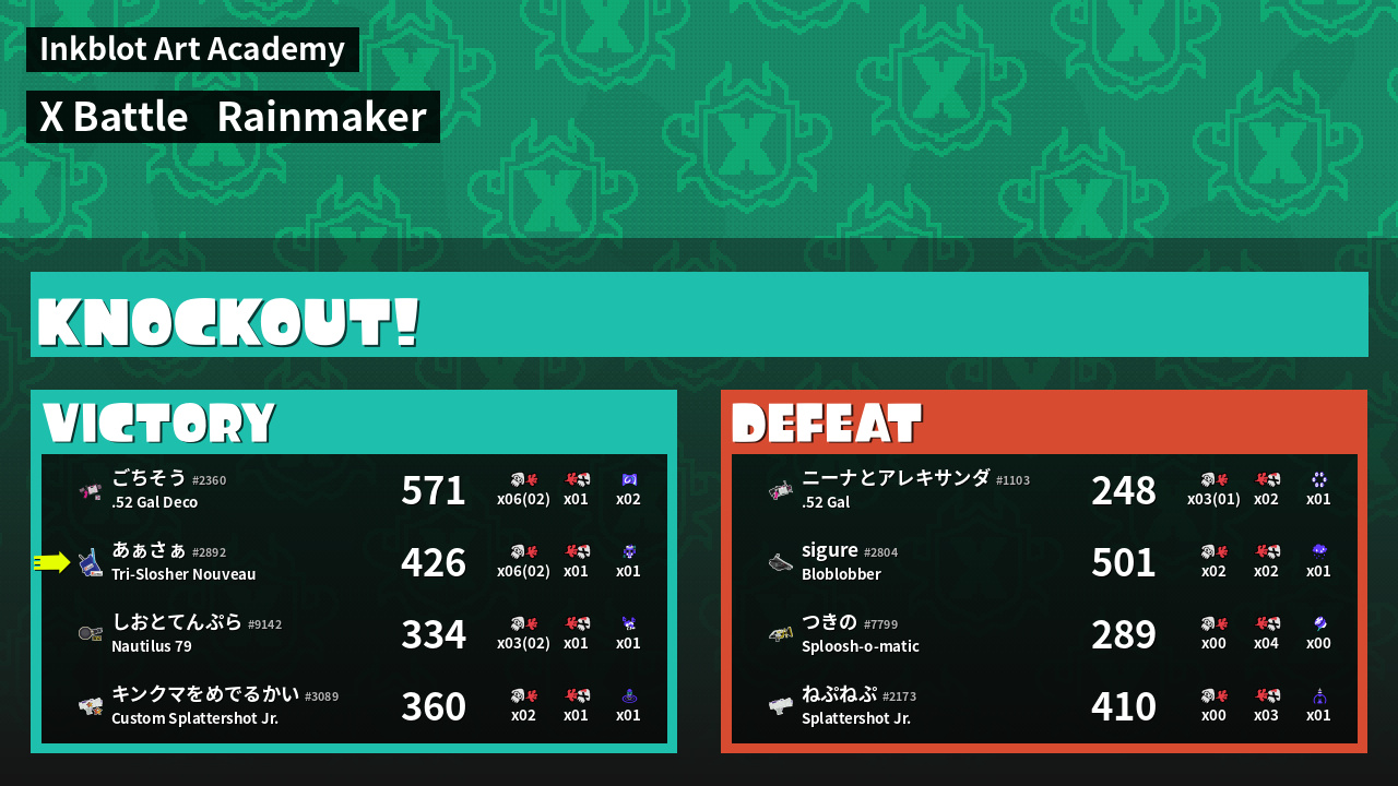 | Weapon | Tri-Slosher Nouveau ( Fizzy Bomb / Tacticooler) | ||