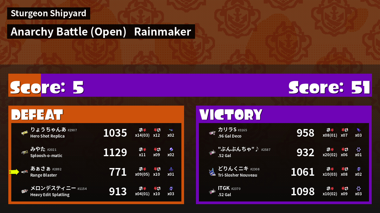 | Mode | Rainmaker - Anarchy Battle (Open) | ||