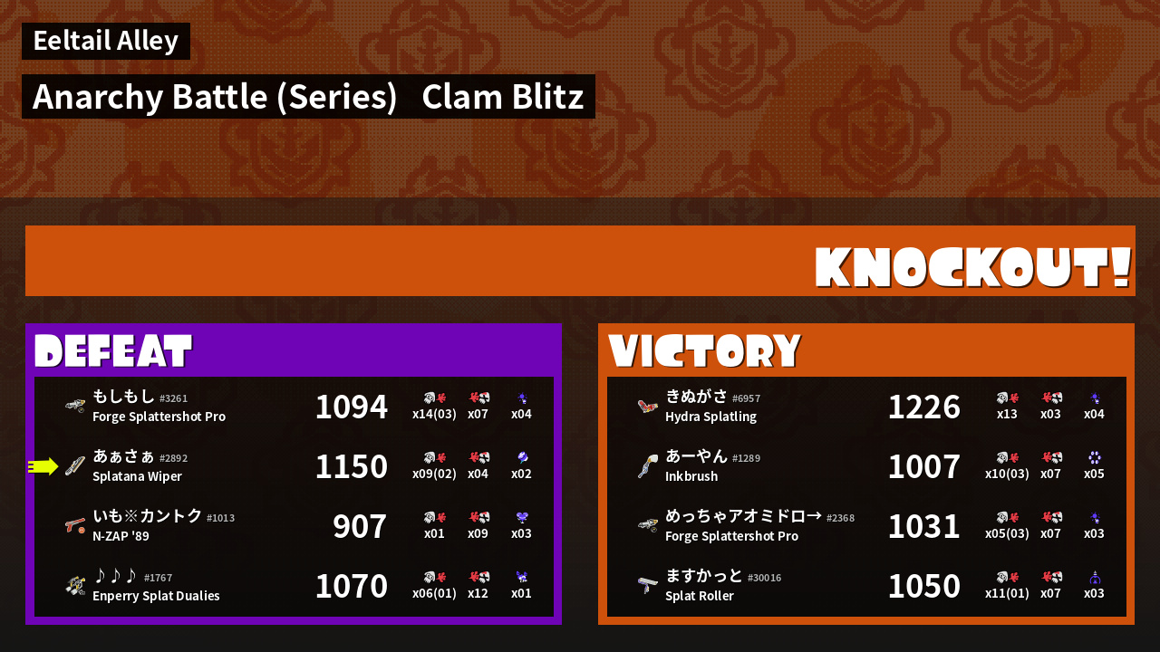 | Mode | Clam Blitz - Anarchy Battle (Series) | ||
