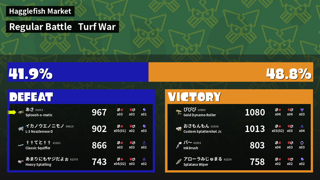 | Weapon | Sploosh-o-matic ( Curling Bomb / Ultra Stamp) | ||