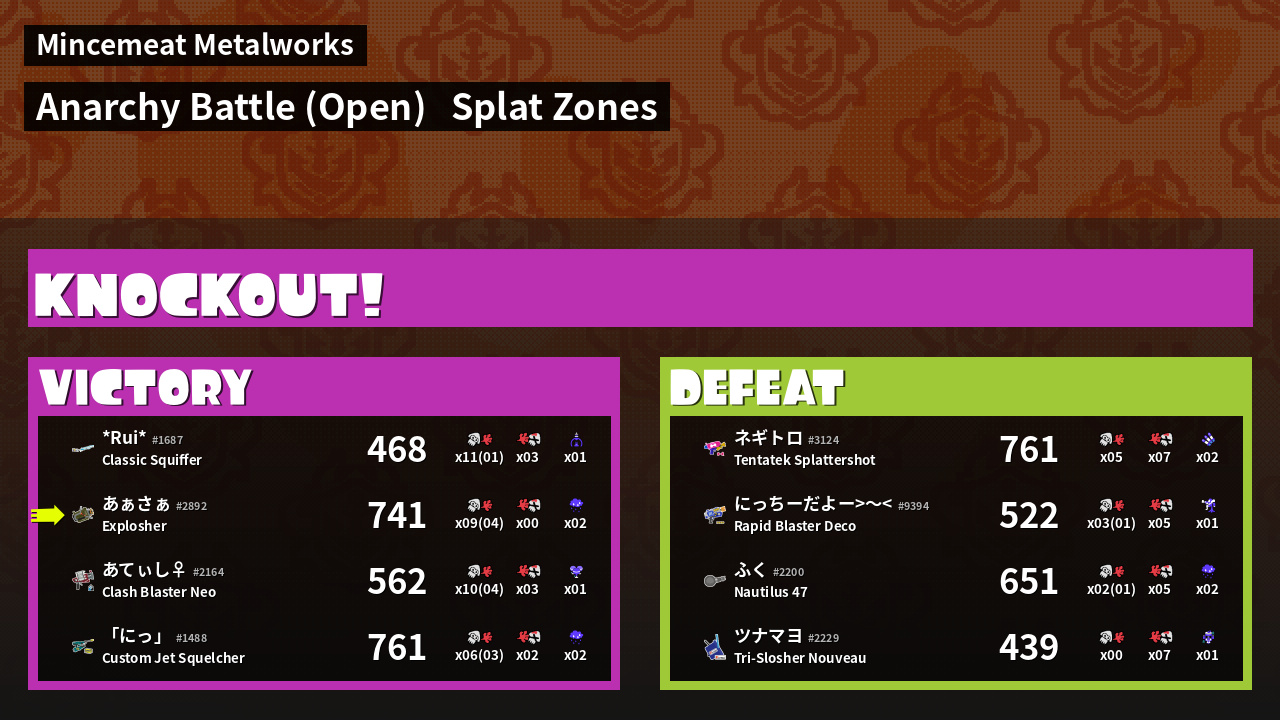 | Mode | Splat Zones - Anarchy Battle (Open) | ||