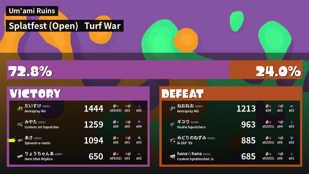 | Weapon | Sploosh-o-matic ( Curling Bomb / Ultra Stamp) | ||