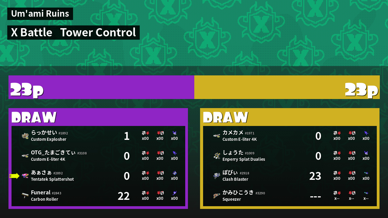 | Weapon | Tentatek Splattershot ( Splat Bomb / Triple Inkstrike) | ||