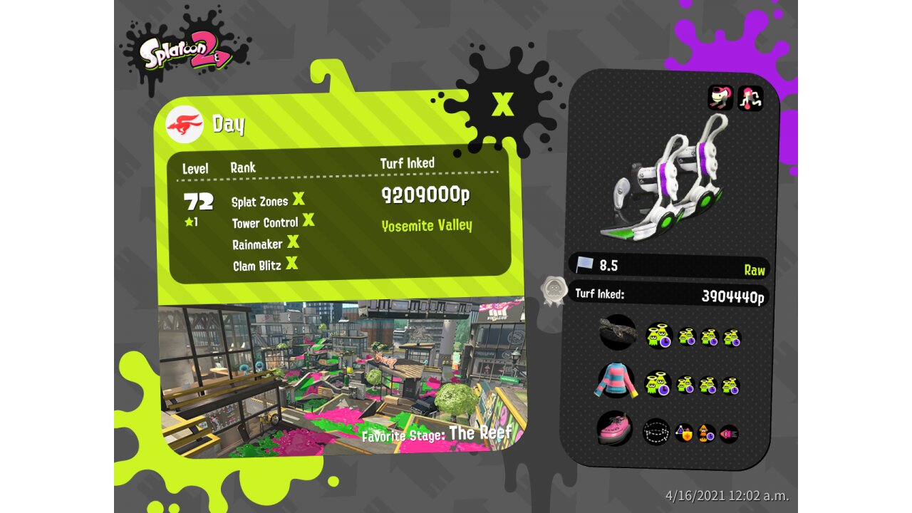 | Mode | Splat Zones - League Battle (Twin) | ||||||||||||||||||||||||||||||||||