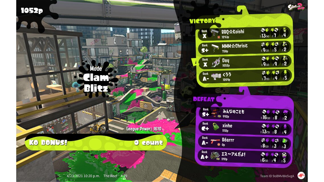 | Mode | Clam Blitz - League Battle (Quad) | ||||||||||||||||||||||||||||||||||||||||