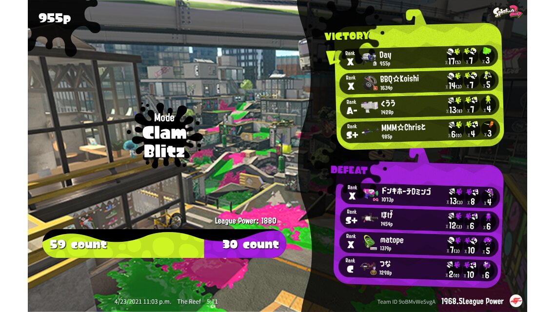 | Mode | Clam Blitz - League Battle (Quad) | ||||||||||||||||||||||||||||||||||||||||