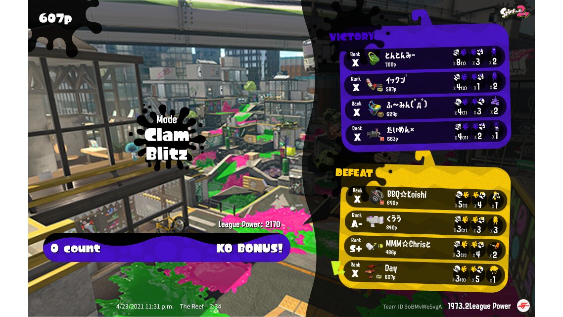 | Mode | Clam Blitz - League Battle (Quad) | |||||||||||||||||||||||||||||||