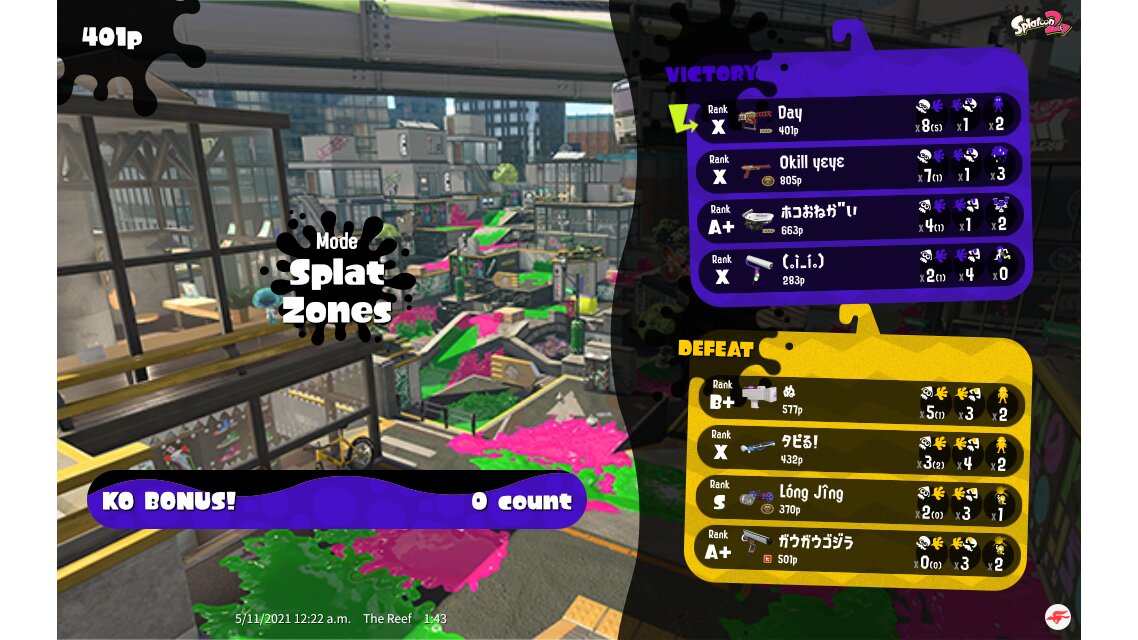 | Mode | Splat Zones - Private Battle | ||||||||||||||||||||||||||||
