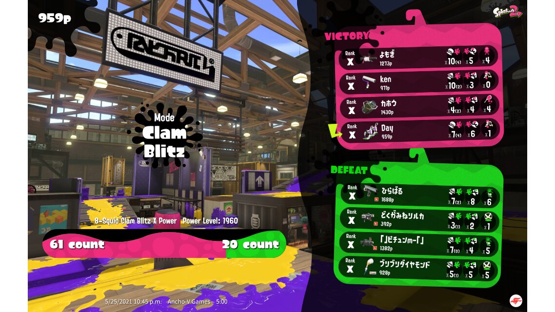 | Mode | Clam Blitz - Ranked Battle | ||||||||||||||||||||||||||||||||||