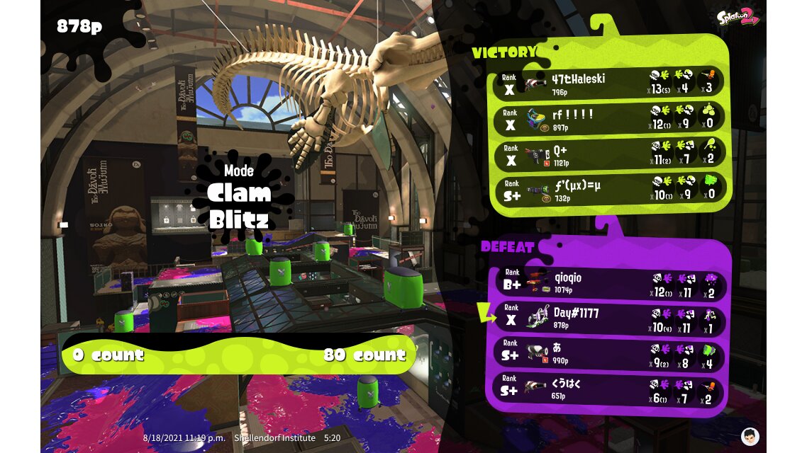 | Mode | Clam Blitz - Private Battle | ||||||||||||||||||||||||||||||||||