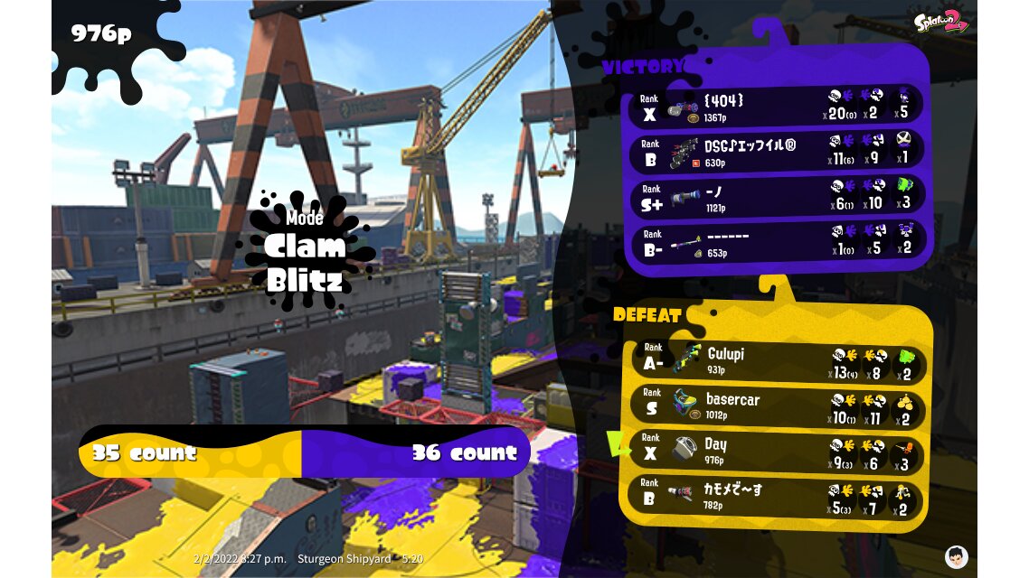 | Mode | Clam Blitz - Private Battle | |||||||||||||||||||||||||||||||