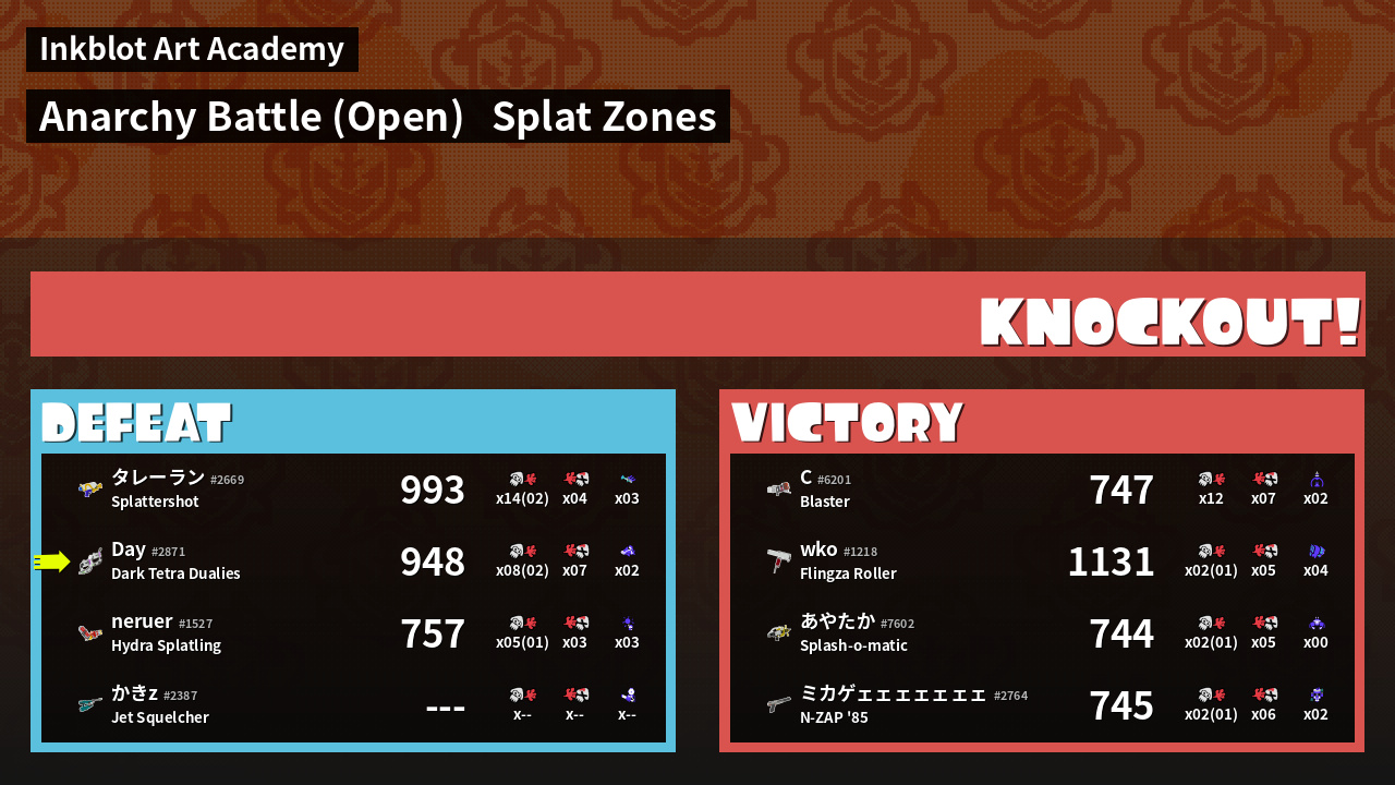 | Mode | Splat Zones - Anarchy Battle (Open) | ||