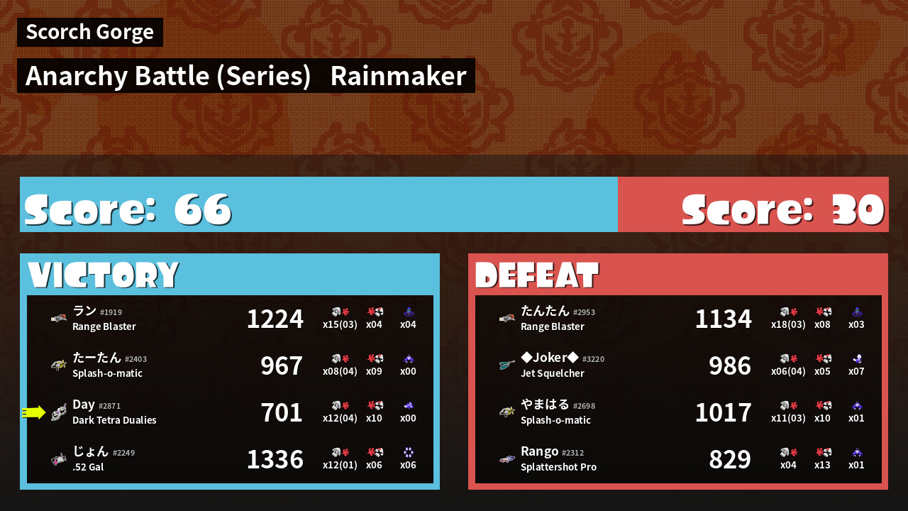 | Mode | Rainmaker - Anarchy Battle (Series) | ||