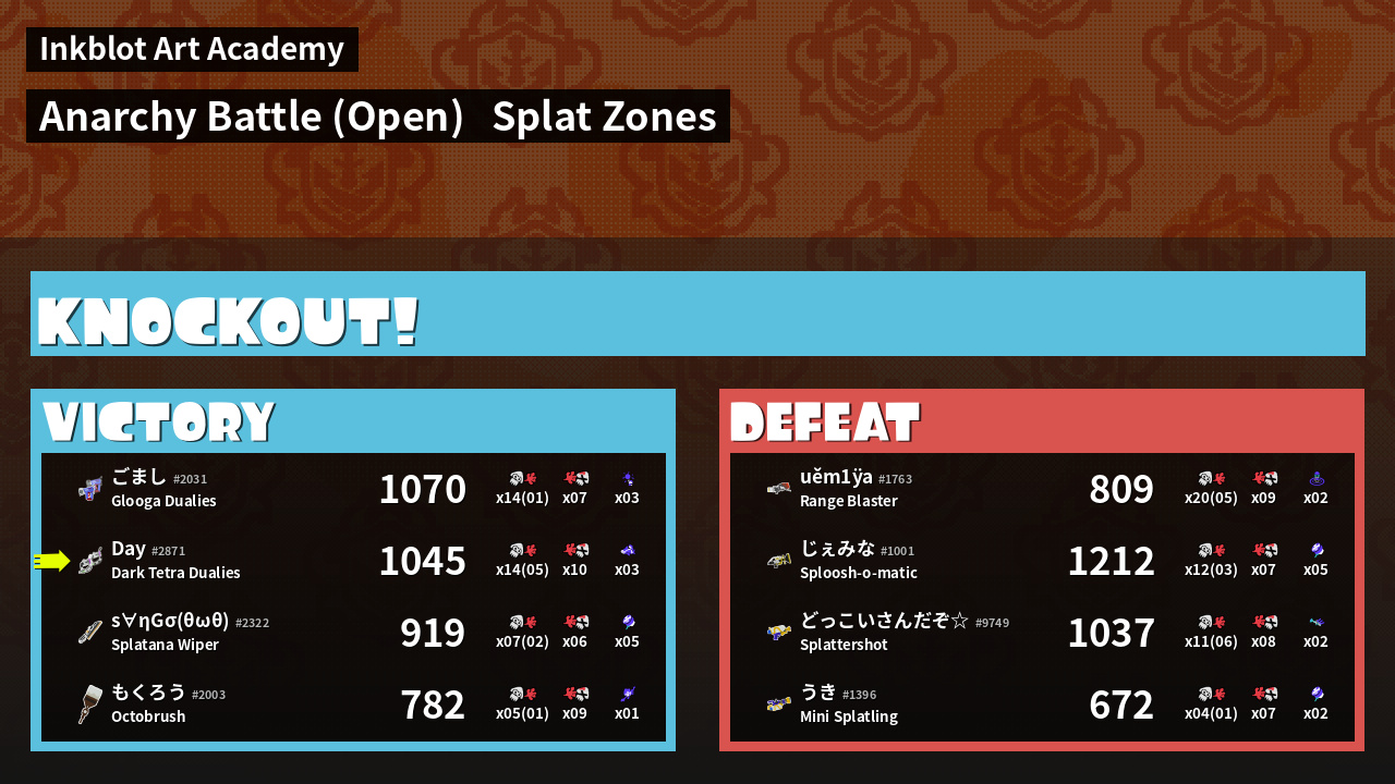 | Mode | Splat Zones - Anarchy Battle (Open) | ||