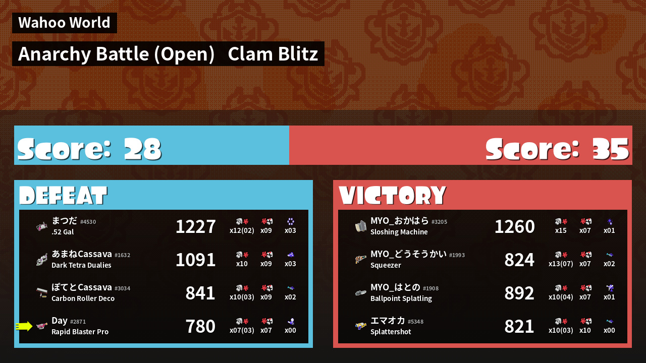 | Mode | Clam Blitz - Anarchy Battle (Open) | ||