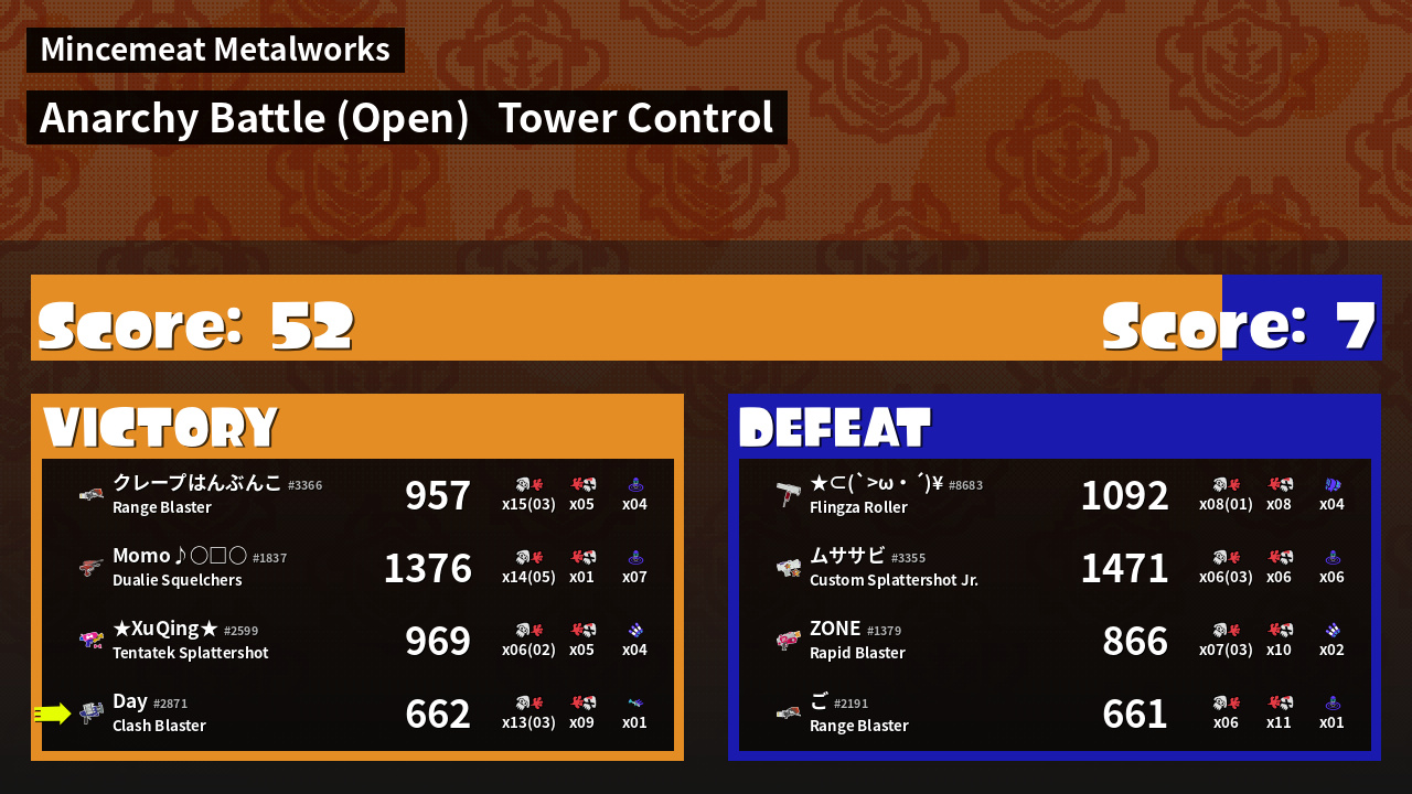 | Mode | Tower Control - Anarchy Battle (Open) | ||