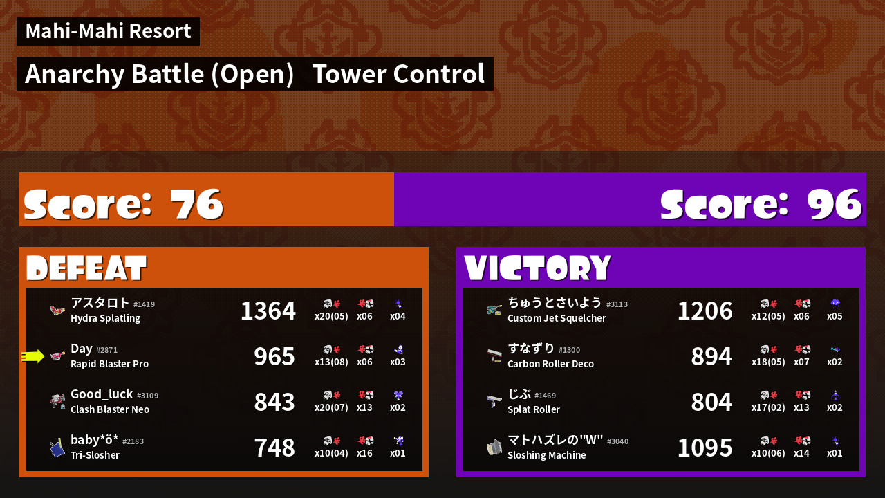 | Mode | Tower Control - Anarchy Battle (Open) | ||