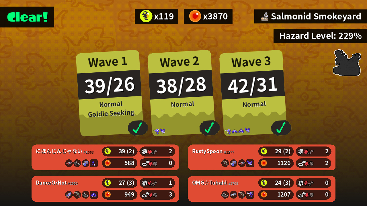 | Boss Salmonid | 17 | 13 | 9 | 14 |