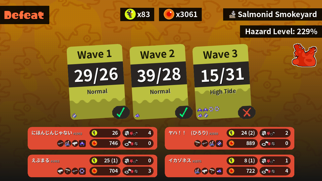 | Boss Salmonid | 21 | 18 | 14 | 13 |