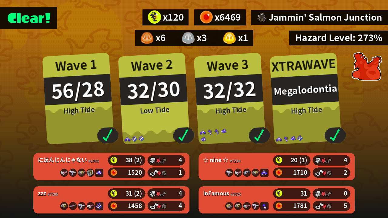 | Weapons | Heavy Splatling Big Swig Roller Splash-o-matic Grizzco Slosher | Dread Wringer Splash-o-matic Heavy Splatling Big Swig Roller | Splash-o-matic Splat Charger Big Swig Roller Heavy Splatling | Big Swig Roller Heavy Splatling H-3 Nozzlenose Splash-o-matic |
