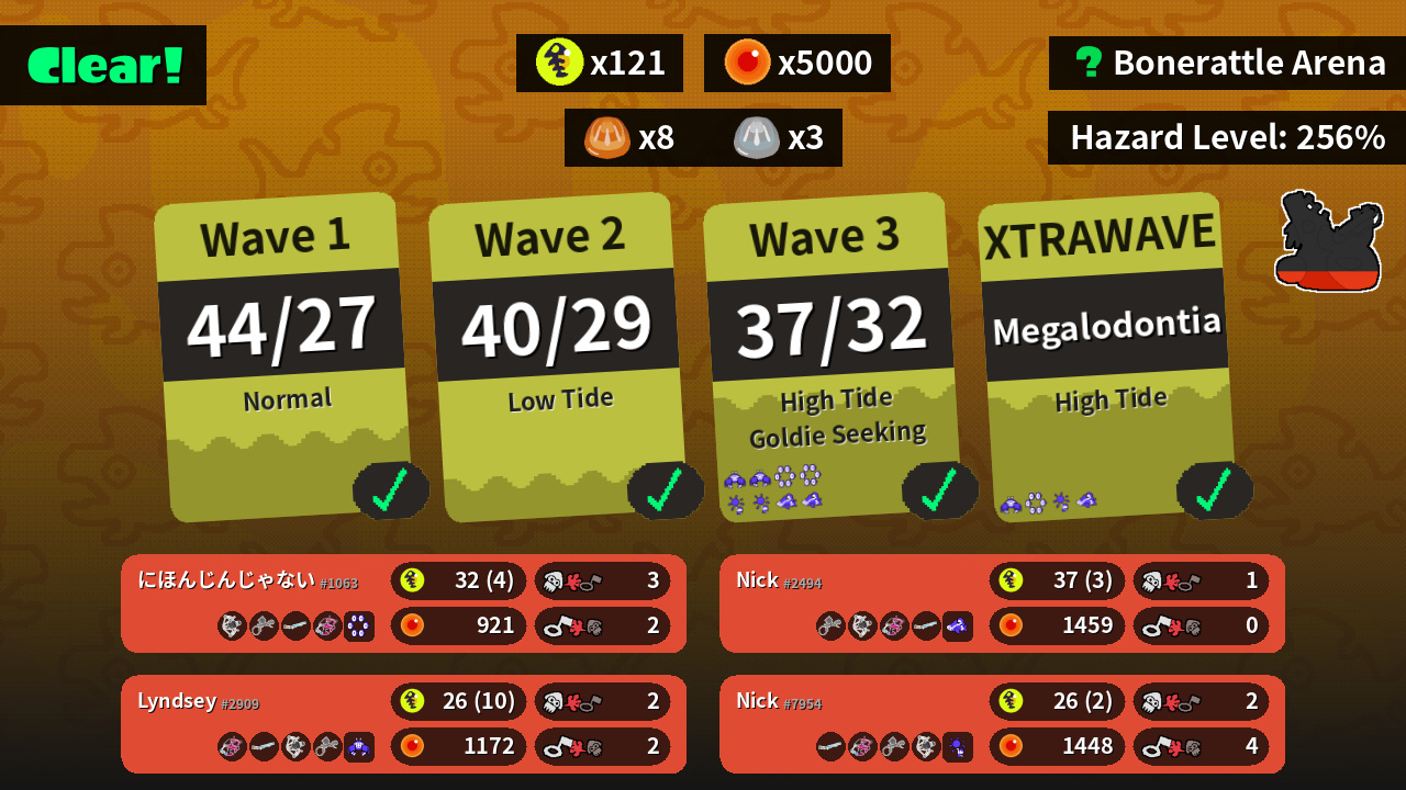 | Boss Salmonid | 15 | 21 | 18 | 17 |