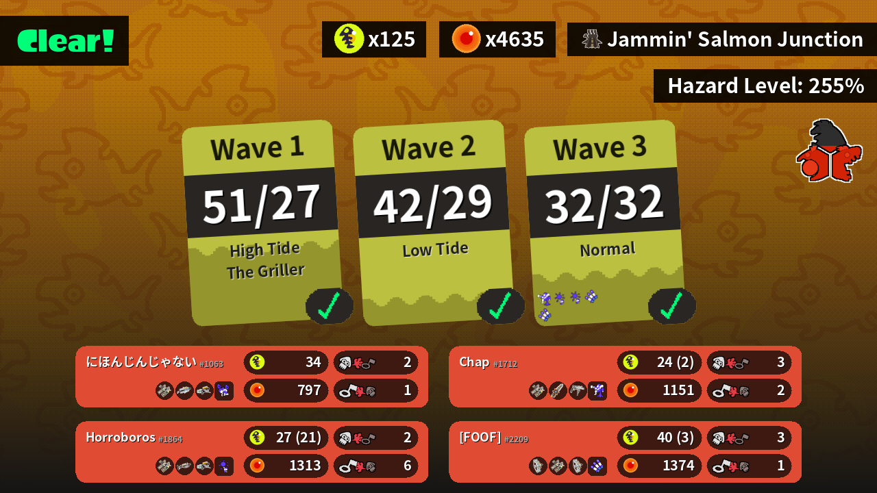 | Weapons | Grizzco Dualies Grizzco Brella Grizzco Blaster | Grizzco Stringer Grizzco Dualies Grizzco Stringer | Grizzco Dualies Grizzco Charger Grizzco Blaster | Grizzco Dualies Grizzco Splatana Grizzco Roller |