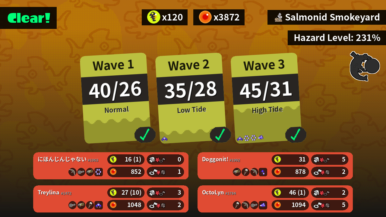 | Boss Salmonid | 20 | 14 | 17 | 17 |